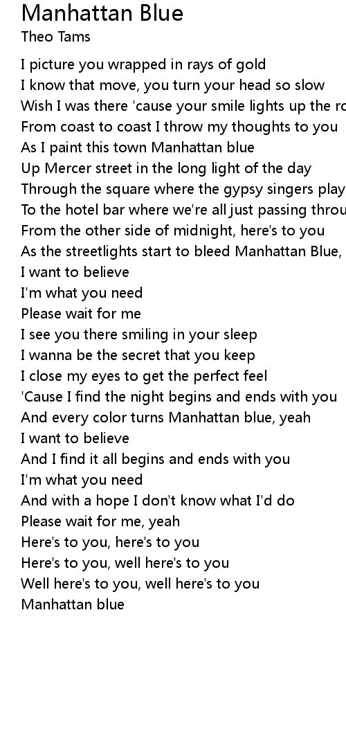 And every color turns Manhattan blue, yeah |