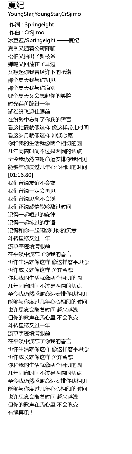 | [00:00.00] | 冰豆逗/Springeight ——夏纪 |