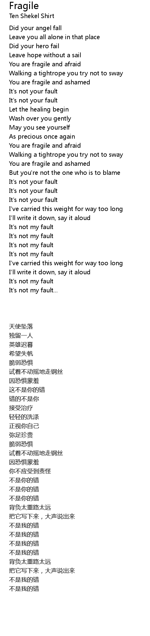 You are fragile and ashamed |