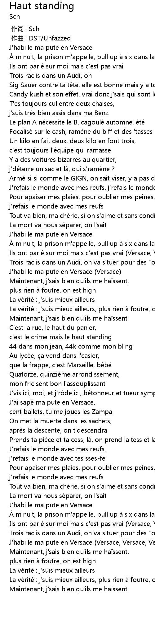 | [01:11.98] | J'habille ma pute en Versace (Versace) |