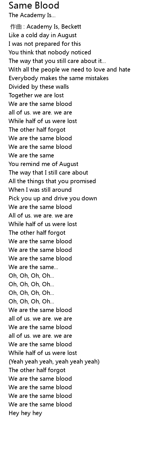 | [02:44.28] | We are the same blood |