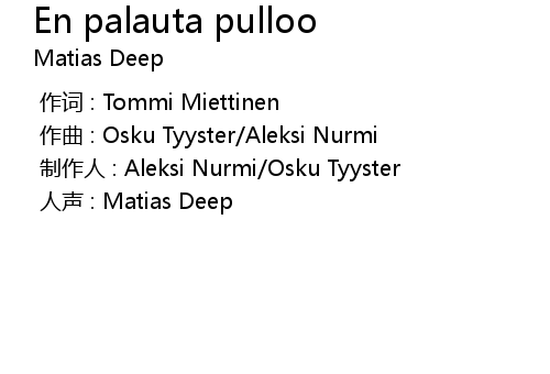 | 歌曲 | En palauta pulloo |