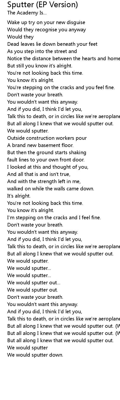 But all along I knew that we would sputter out. (We would sputter) |
