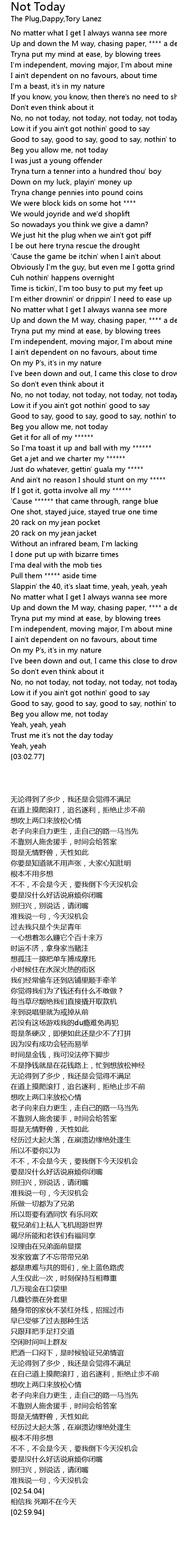 No, no not today, not today, not today, not today, no not today |