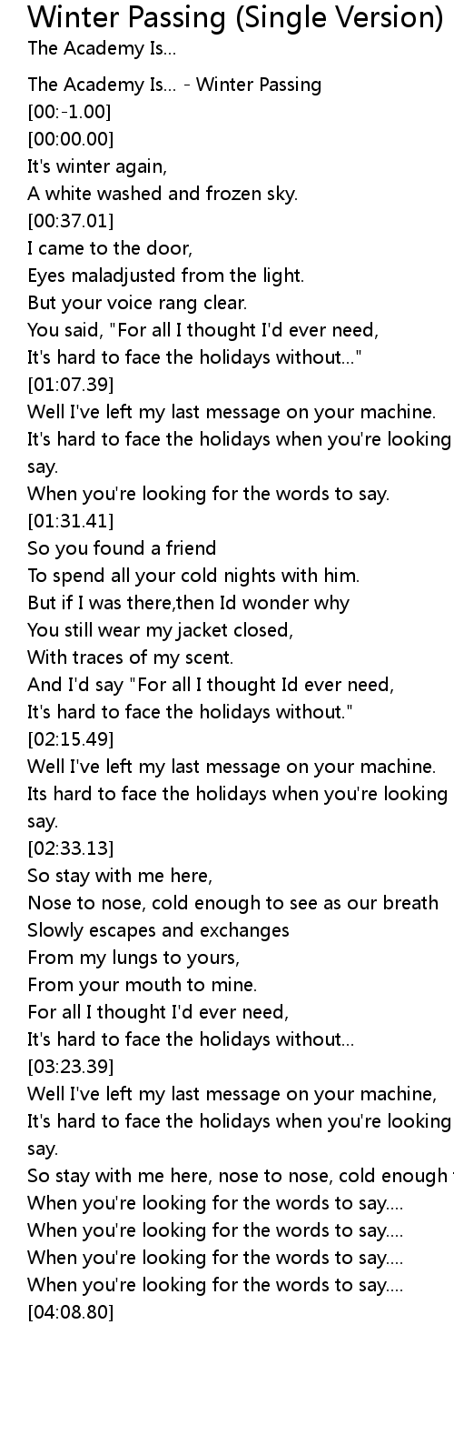 The Academy Is... - Winter Passing |