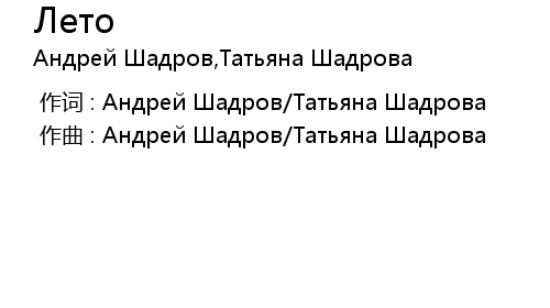 | [00:00.00-1] | 作曲 : Андрей Шадров/Татьяна Шадрова |