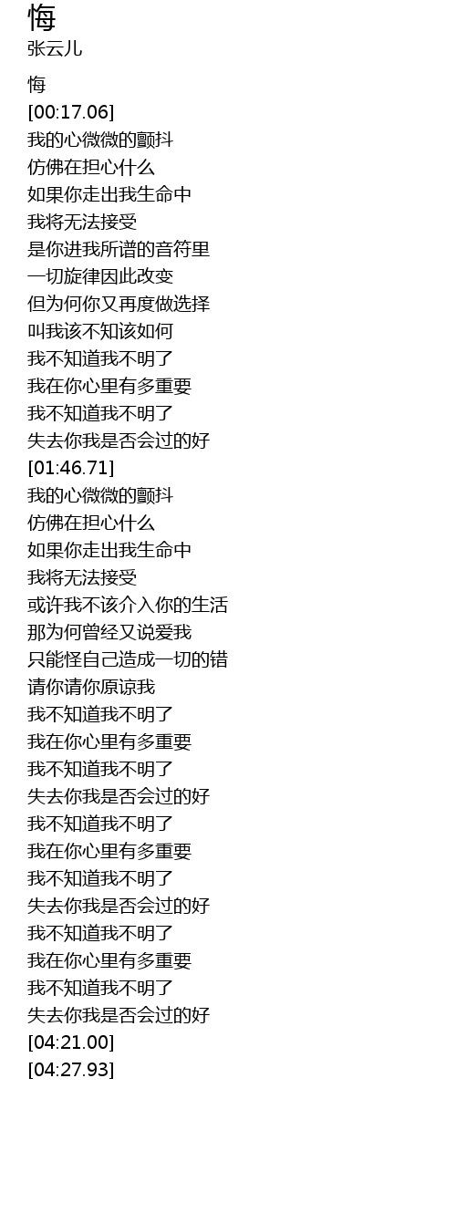 | [00:01.22] | 悔 |