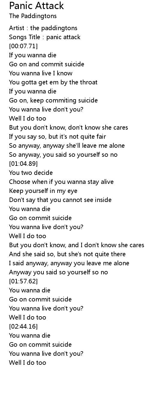 | [00:03.59] | Songs Title:panic attack |