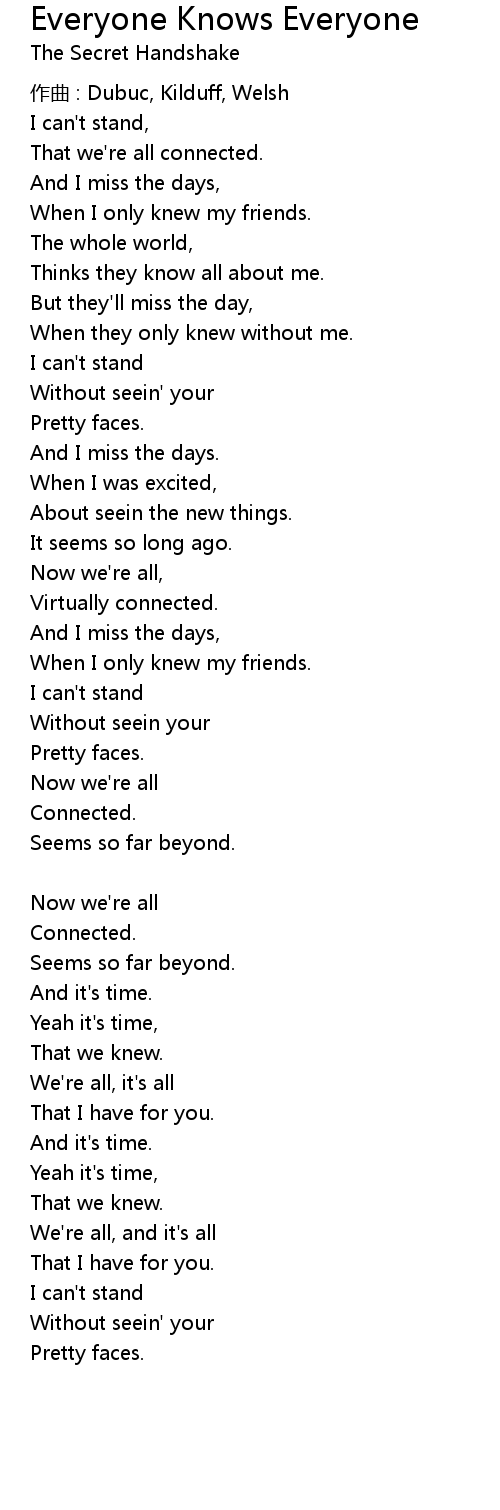 | 歌曲 | Everyone Knows Everyone |