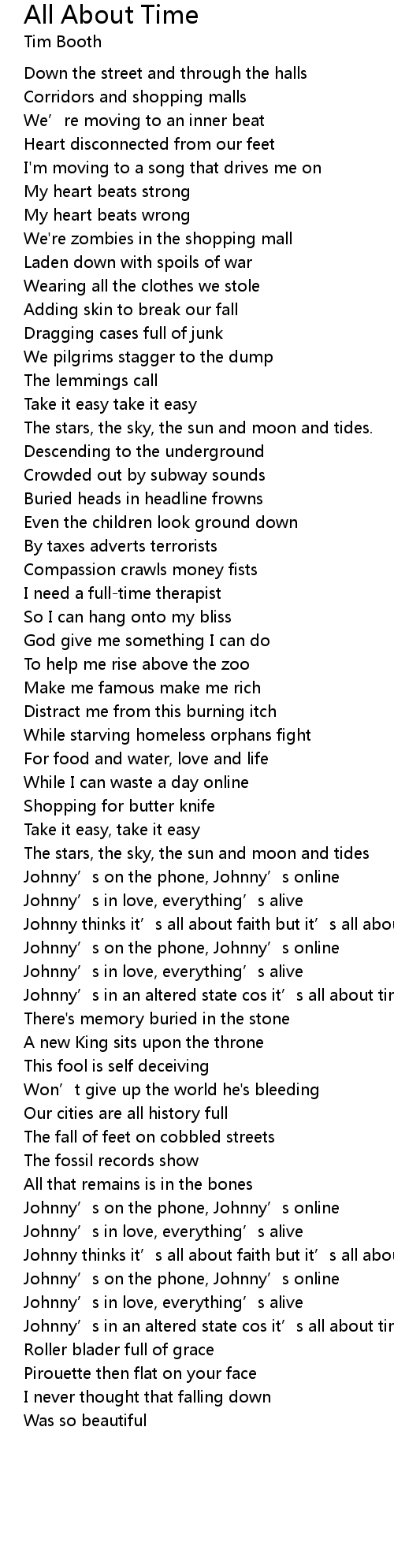 | Johnny thinks it' s all about faith but it' s all about time | |
