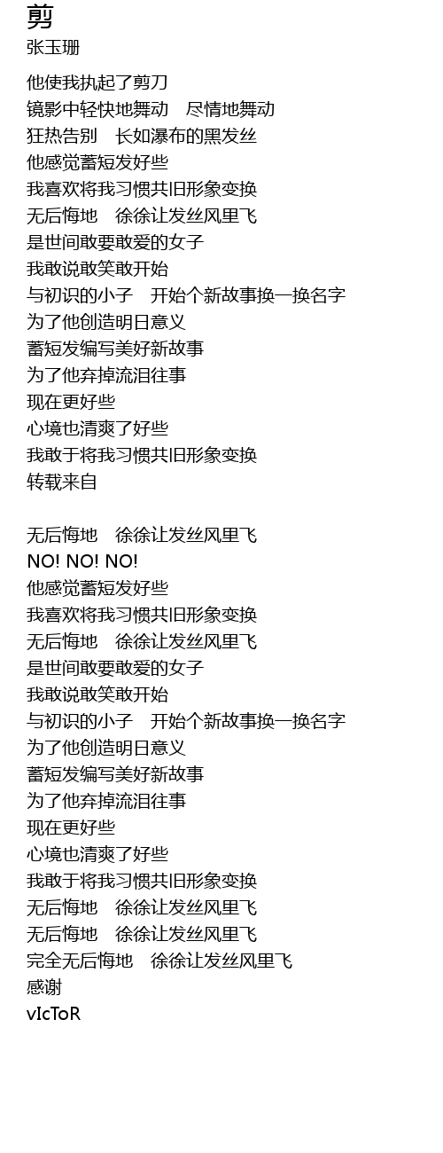 | 完全无后悔地 徐徐让发丝风里飞 | |