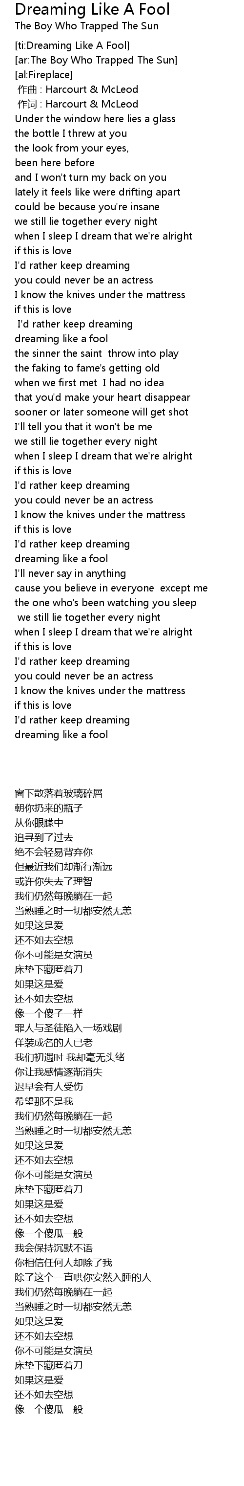 | [ti:Dreaming Like A Fool] | |