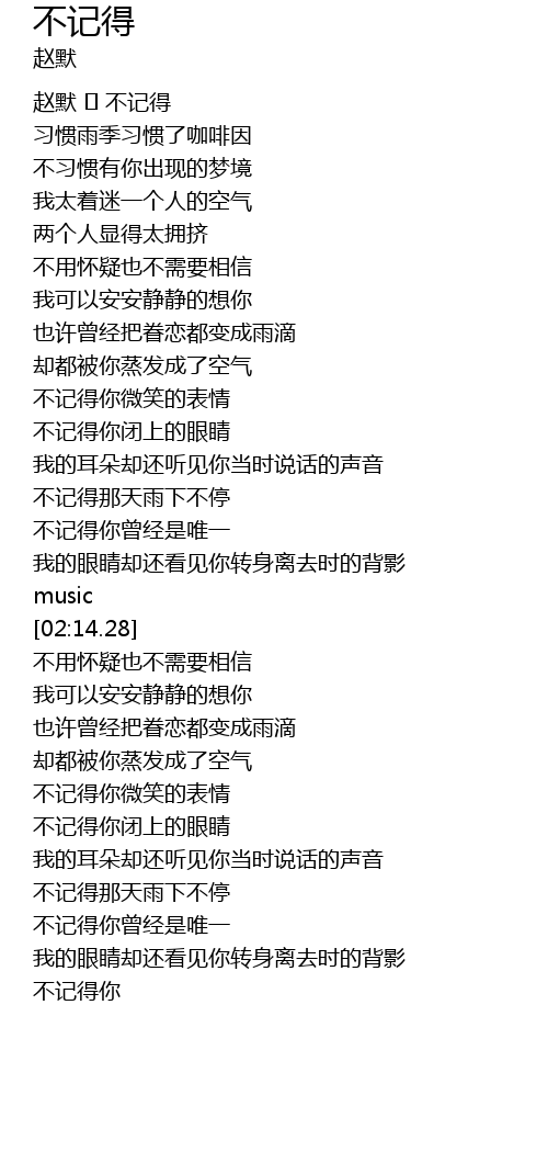 | [02:45.65] | 不记得你闭上的眼睛 |