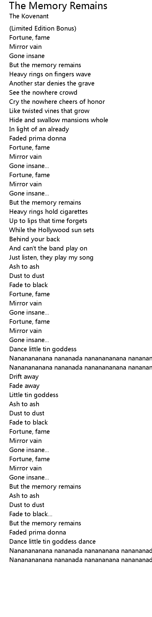 But the memory remains |