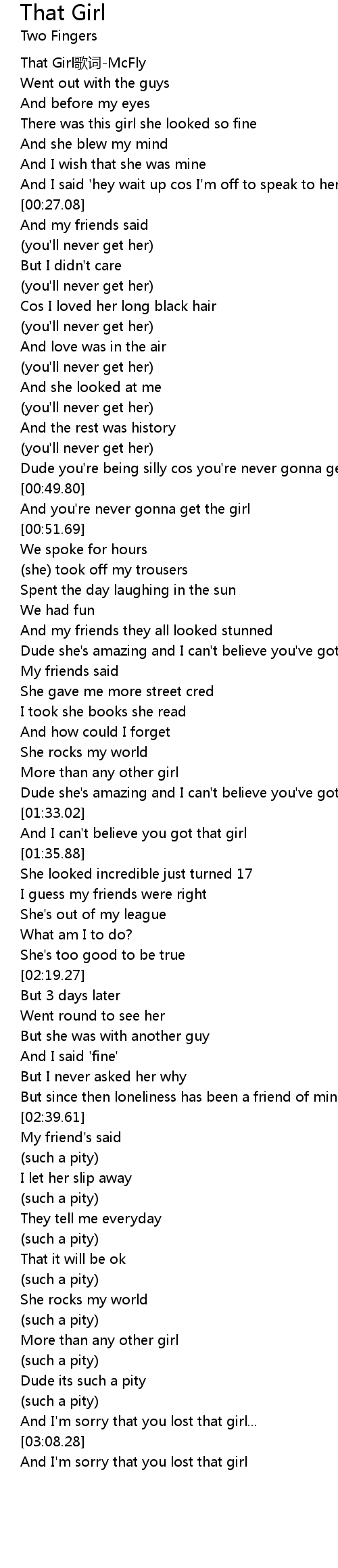 | [01:06.59] | Dude she's amazing and I can't believe you've got that girl |