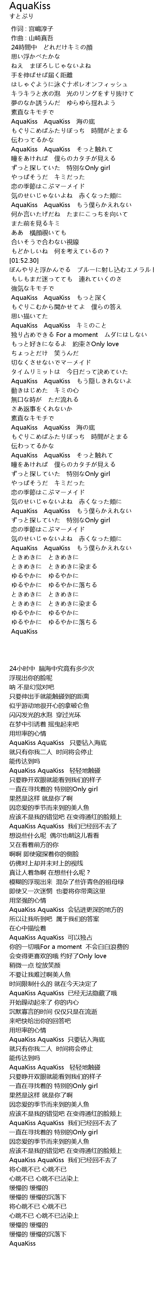 | [00:52.84] | AquaKiss AquaKiss 只要钻入海底 |