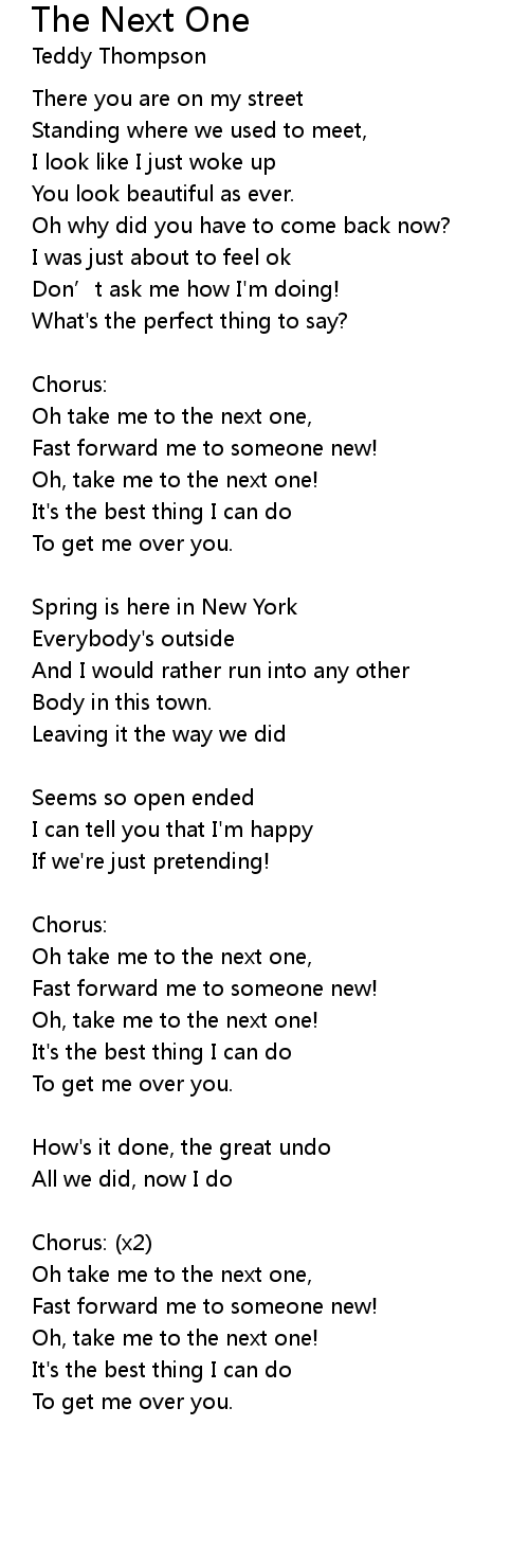 | Oh take me to the next one, | |