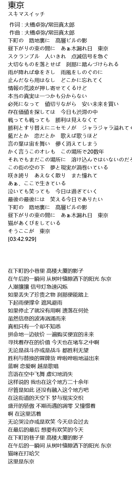 | [03:25.179] | 昼下がりの束の間に あぁ木漏れ日 東京 |