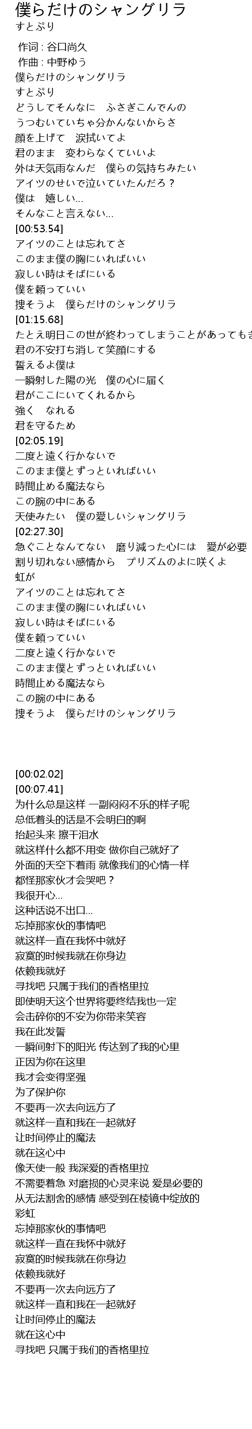 | [00:02.02] | 僕らだけのシャングリラ |