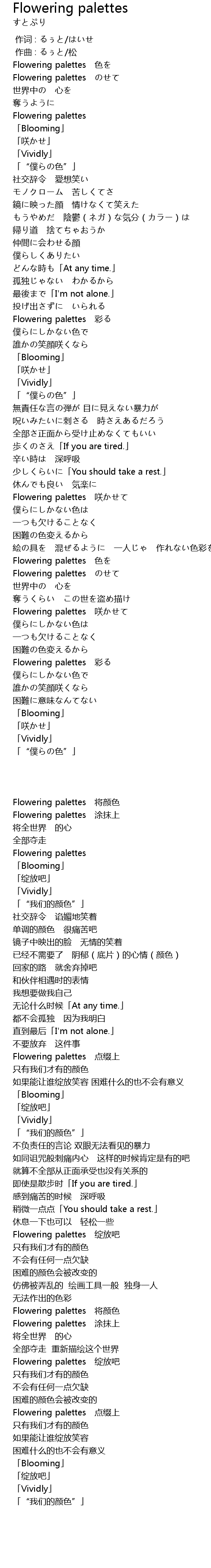 | [02:23.349] | Flowering palettes 绽放吧 |