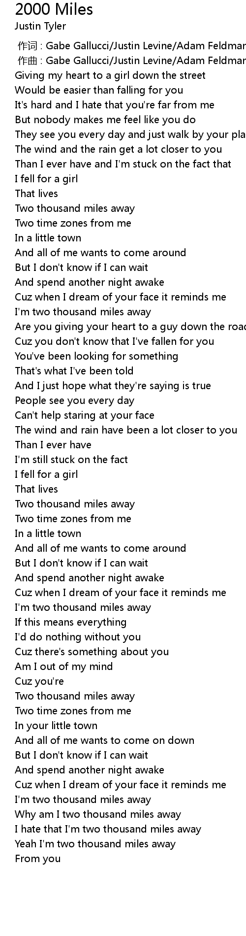 | 歌曲 | 2000 Miles |