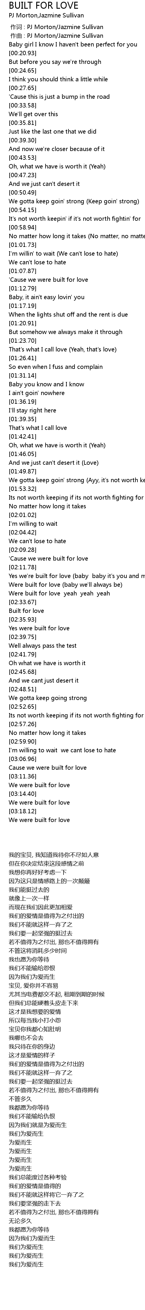 | [02:20.72] | Were built for love (baby we'll always be) |