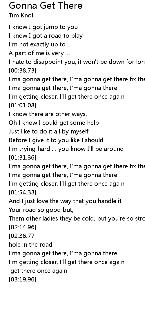| [02:44.47][02:36.77][02:28.80] | I' ma gonna get there, I' ma gonna get there fix the hole in the road |