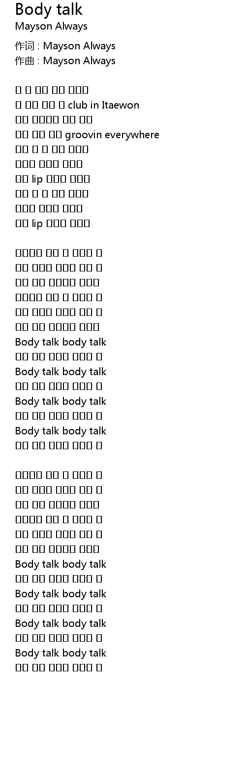 | Body talk body talk | |