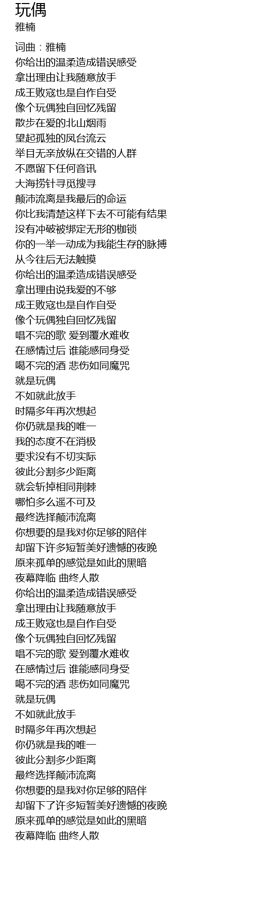 | [00:02.40] | 词曲:雅楠 |