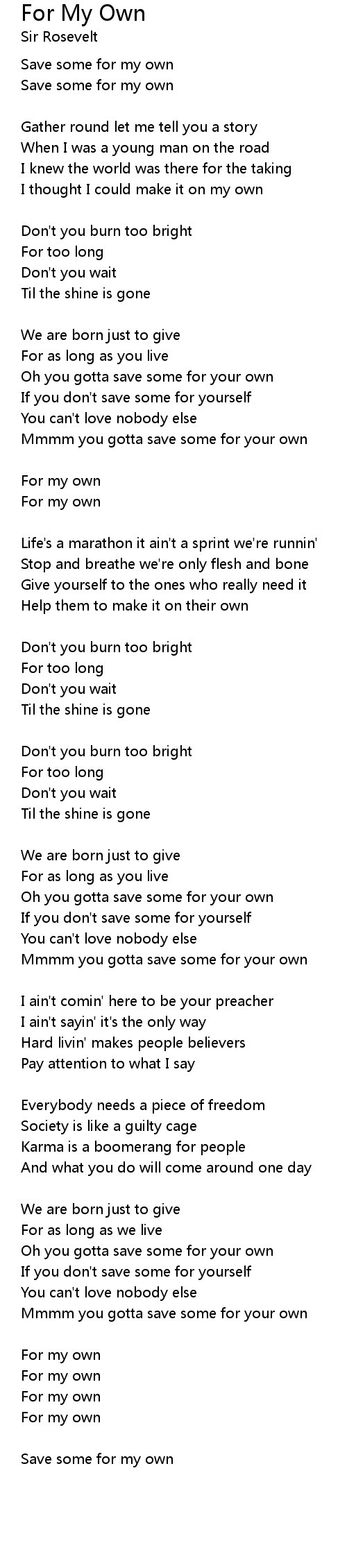 Oh you gotta save some for your own |