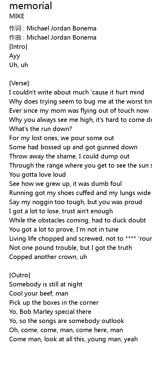 | 作词 : Michael Jordan Bonema | |