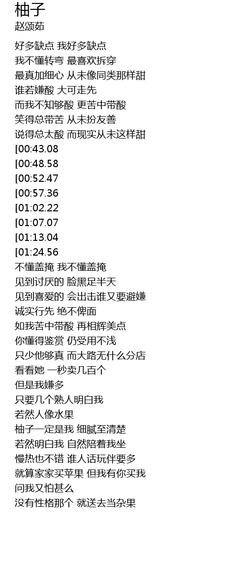 | [02:54.24] | 柚子一定是我 细腻至清楚 |