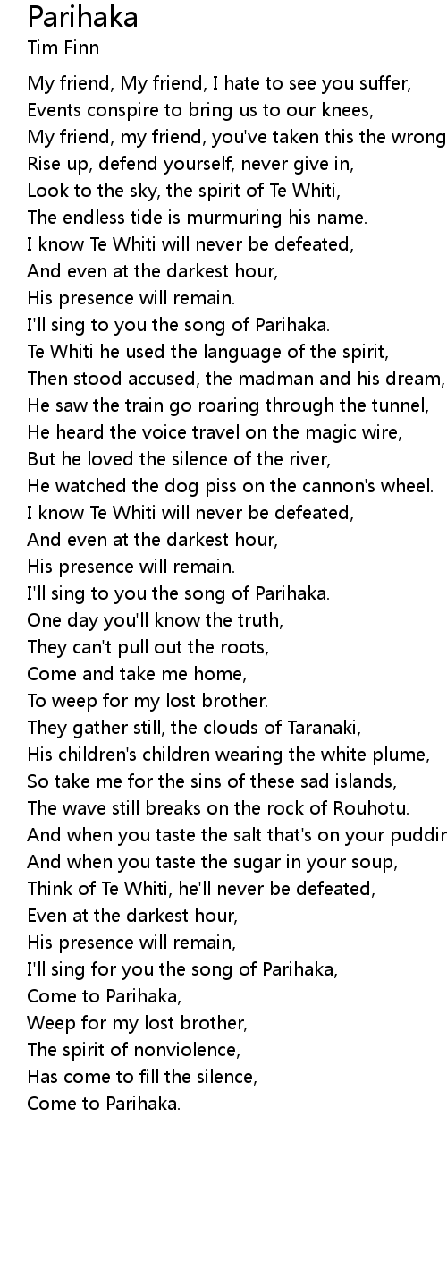 | I'll sing for you the song of Parihaka, | |
