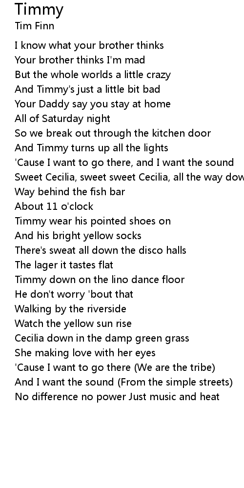 Sweet Cecilia, sweet sweet Cecilia, all the way down |