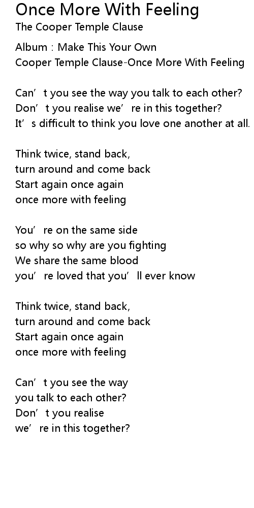 | 歌曲 | Once More With Feeling |