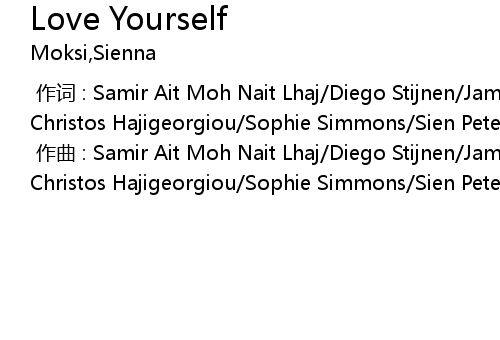 | [00:00.00-1] | 作曲 : Samir Ait Moh Nait Lhaj/Diego Stijnen/James Alexander Christos Hajigeorgiou/Sophie Simmons/Sien Peter |