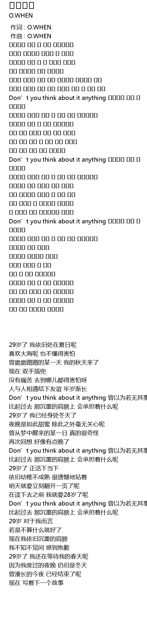 | [00:00.312] | 29岁了 我依旧处在夏日呢 |