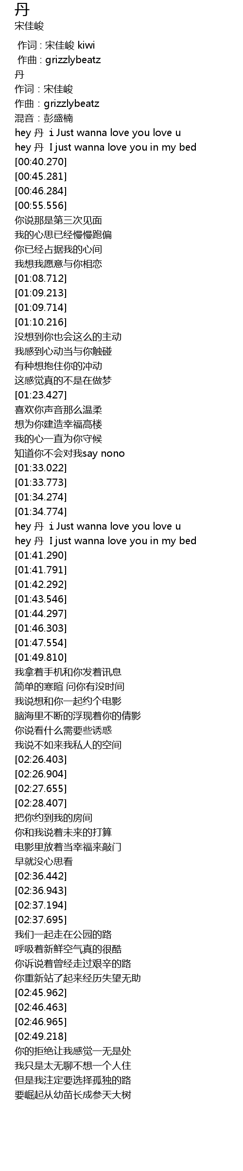 | [01:40.538] | hey 丹 I just wanna love you in my bed |