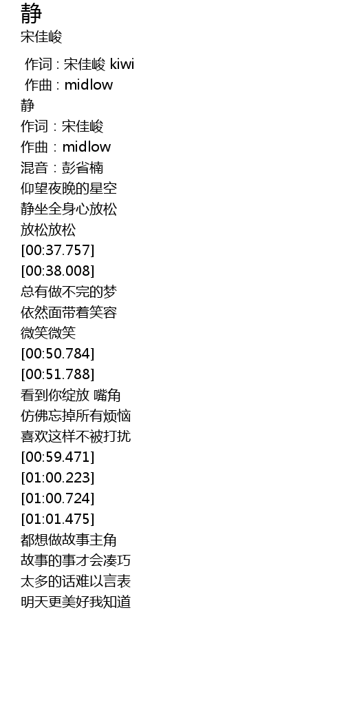 | [00:00.000] | 作词 : 宋佳峻 kiwi |
