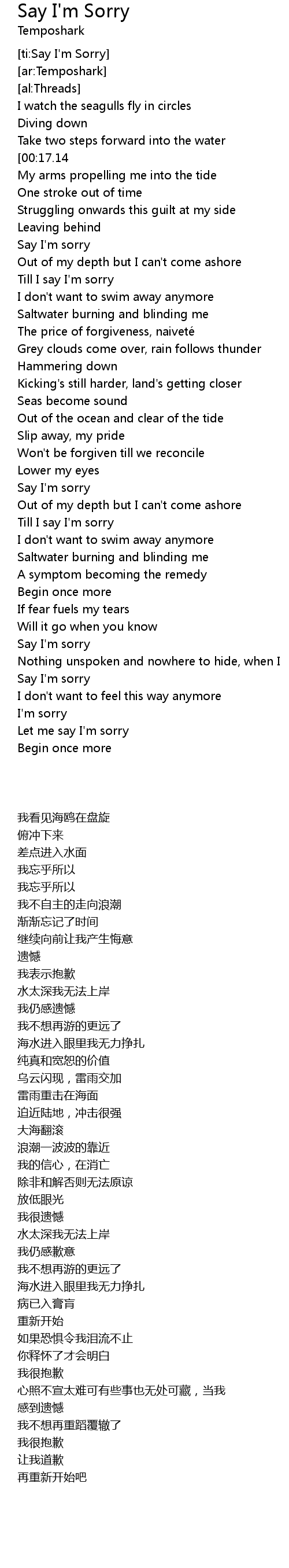 | [02:16.32] | Say I' m sorry |