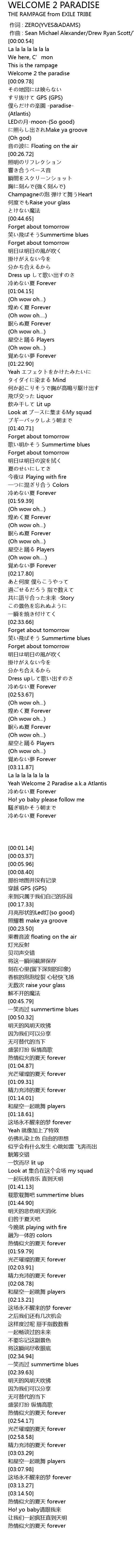 | [03:14.50] | Yeah Welcome 2 Paradise a.k.a Atlantis |