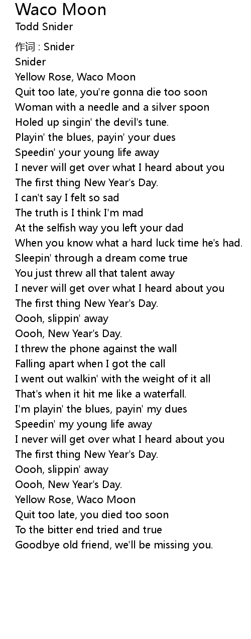 | 歌曲 | Waco Moon |
