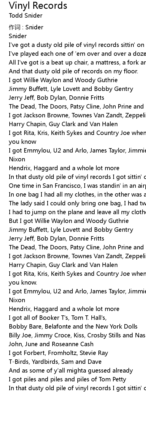 | I' ve got a dusty old pile of vinyl records sittin' on my floor | |