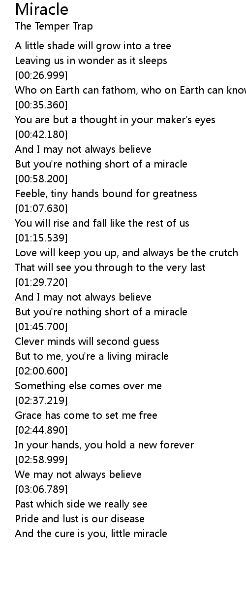 | [00:50.150] | But you're nothing short of a miracle |
