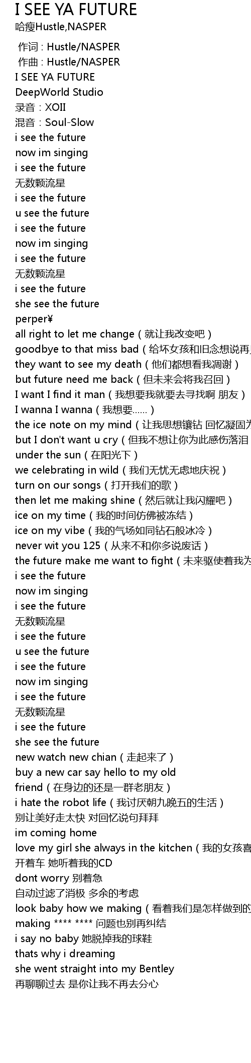 | [00:05.416] | I SEE YA FUTURE |