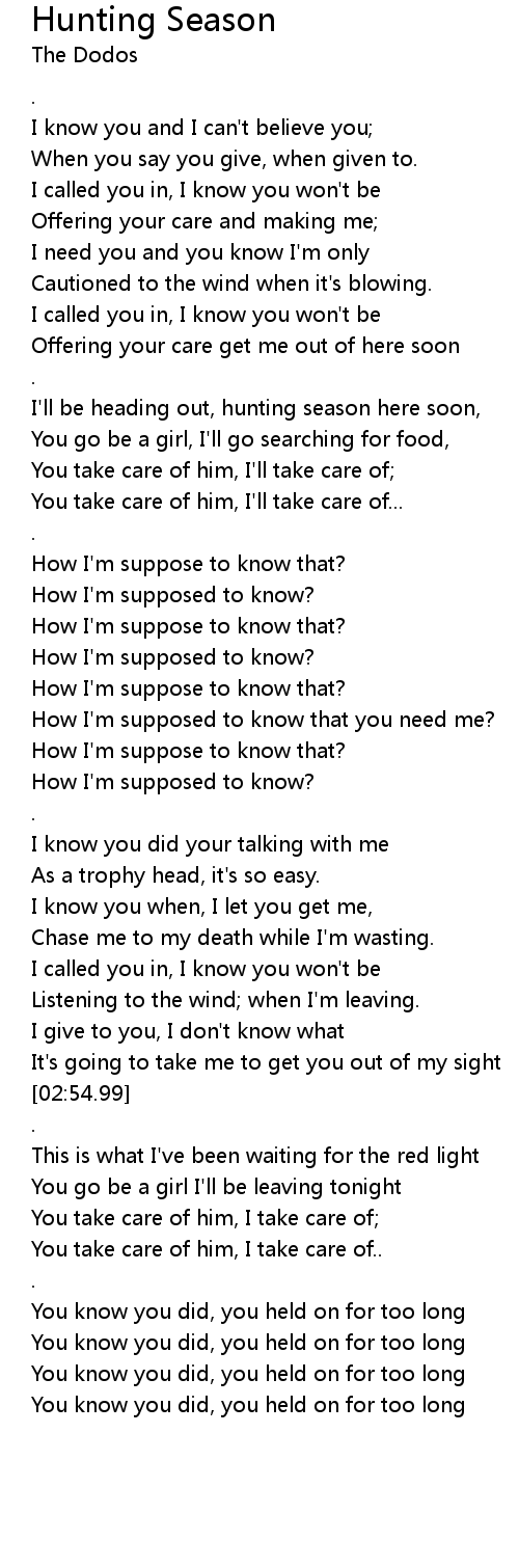 | [00:58.95] | I'll be heading out, hunting season here soon, |
