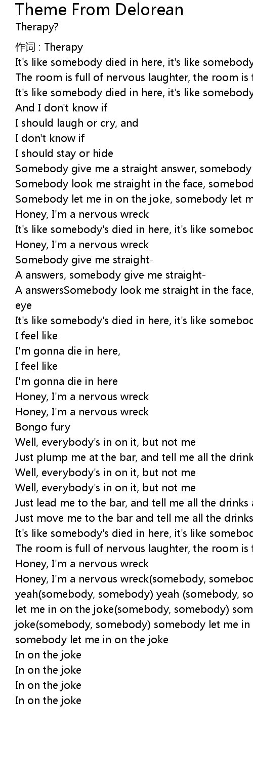 | Honey, I'm a nervous wreck(somebody, somebody) yeah (somebody, somebody) yeah(somebody, somebody) yeah (somebody, somebody)(somebody, somebody) somebody let me in on the joke(somebody, somebody) somebody let me in on the joke(somebody, somebody) somebody let me in on the joke(somebody, somebody) somebody let me in on the joke | |