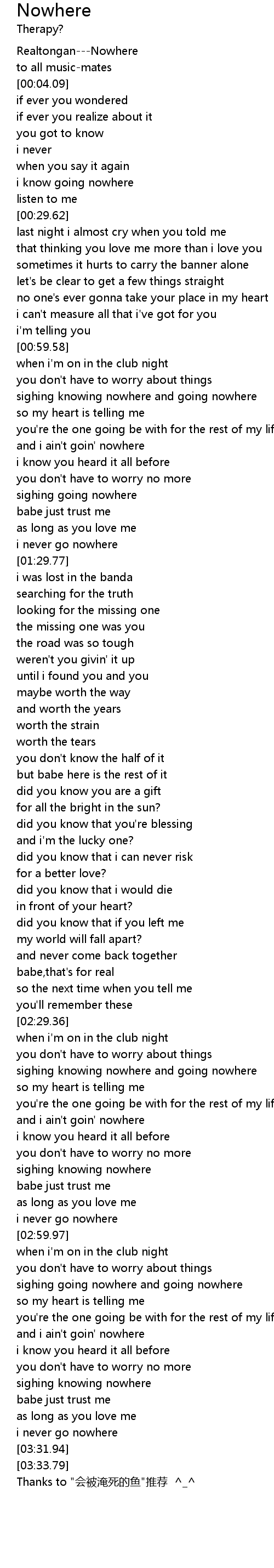 | [03:34.79] | Thanks to "会被淹死的鱼"推荐 ^_^ |