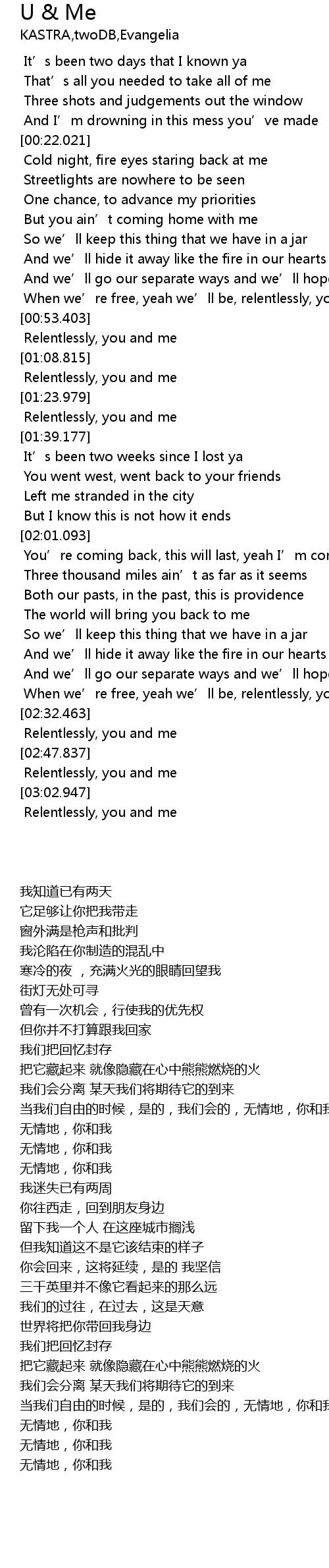 | [02:27.249] | When we’re free, yeah we’ll be, relentlessly, you and me |