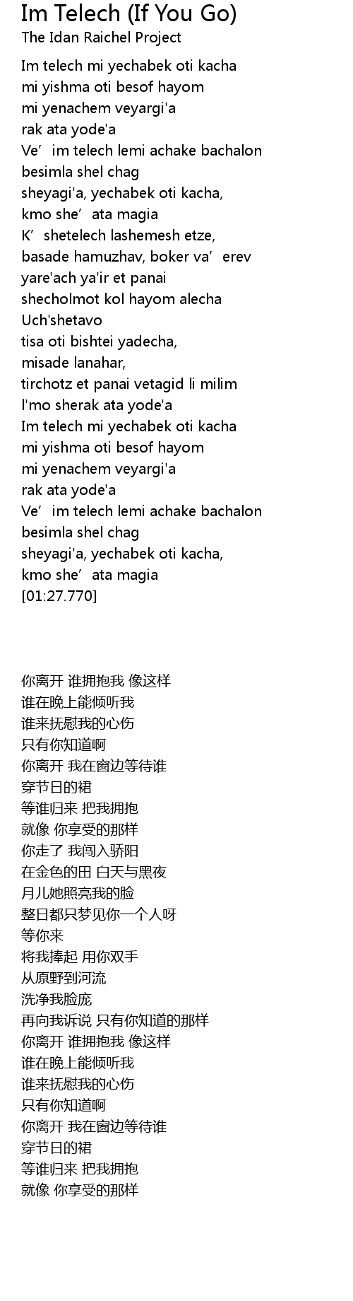 | [00:08.500] | Im telech mi yechabek oti kacha |